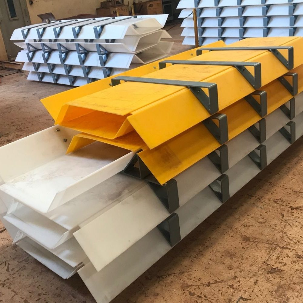 PE made water Flumes are another wonderful addition in our industrial products. Titronic shapes customised flumes for process water based on the dimensions of conveyor belt and client needs. These are well engineered structures which minimize water wastage.