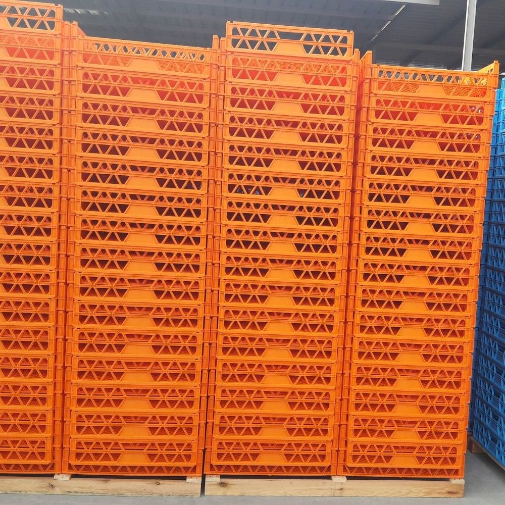 DIMENSIONS : 720x650x150mm || CAPACITY : 73 Litres || WEIGHT : 1.8 Kgs || MATERIAL : Polypropylene Copolymer || TYPES : Stackable / Nestable || COLORS : Blue, Green, Red & Yellow || USAGE : Breadmaker/Supermarkets.