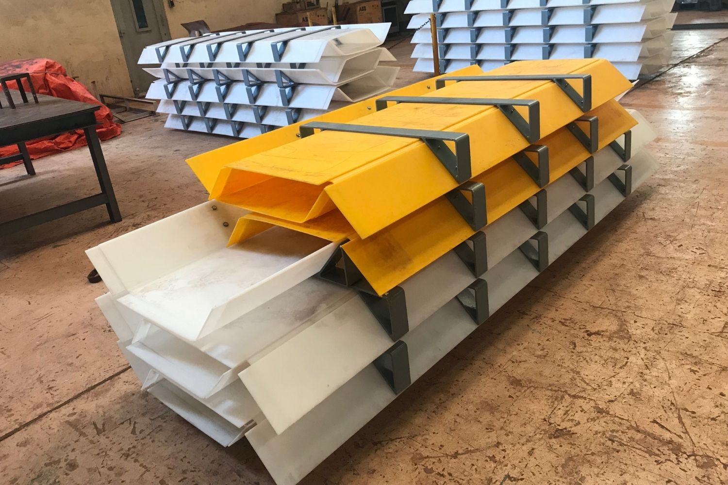 PE made water Flumes are another wonderful addition in our industrial products. Titronic shapes customised flumes for process water based on the dimensions of conveyor belt and client needs. These are well engineered structures which minimize water wastage.